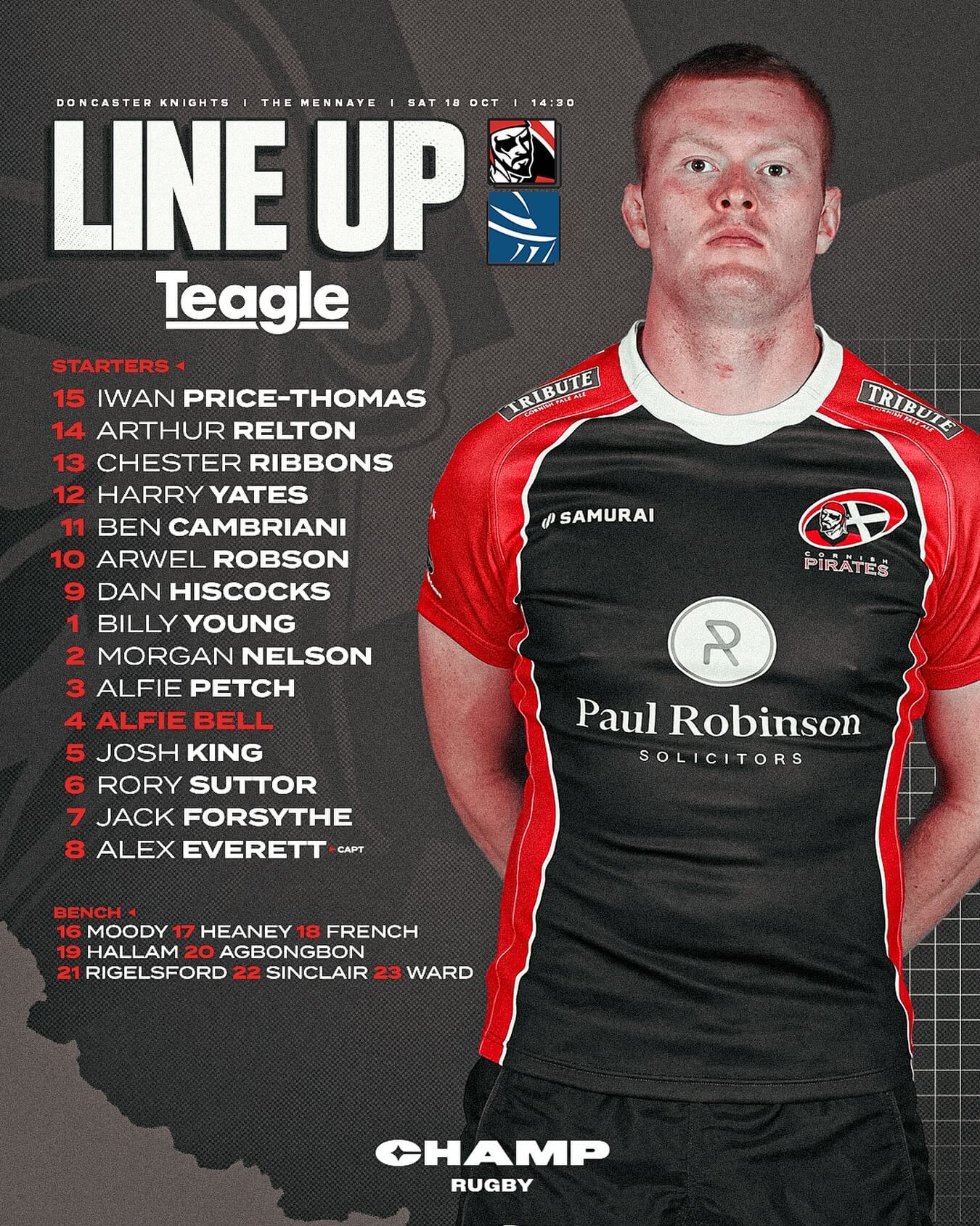 This Saturday, 18th October, the Cornish Pirates will welcome Doncaster Knights to the Mennaye Field in Round 3 of ‘Champ’ Rugby, with kick-off at 2.30pm. The clash is being billed as a game to whet rugby appetites as the Pirates seek their first win of the campaign.