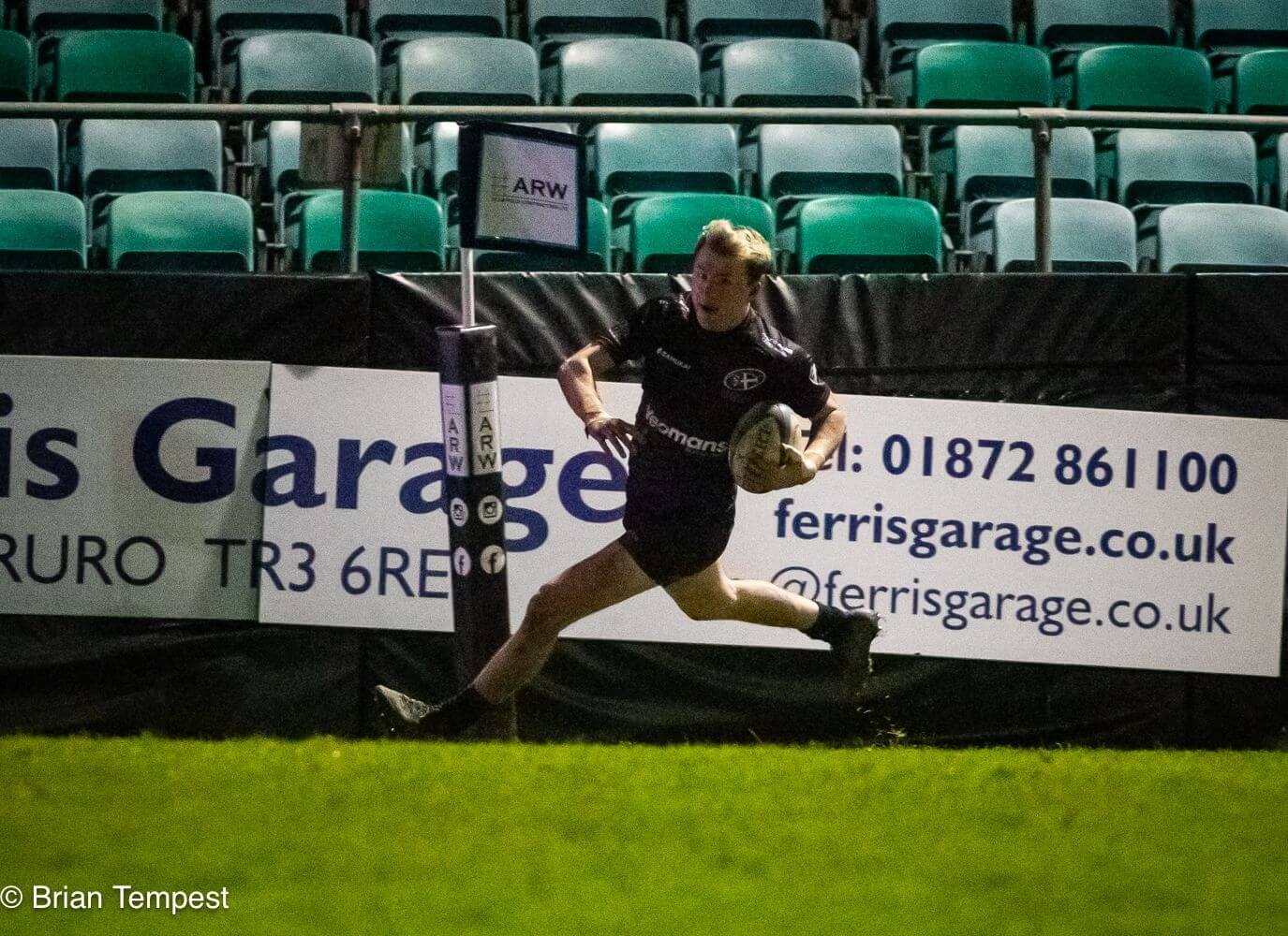 Quick out of the blocks, the Pirates got off to a fine start, when slick handling and a burst on to the ball by centre Charlie McCaig saw him score near the Penzance posts. Fly-half Iwan Jenkins added the extra two points.