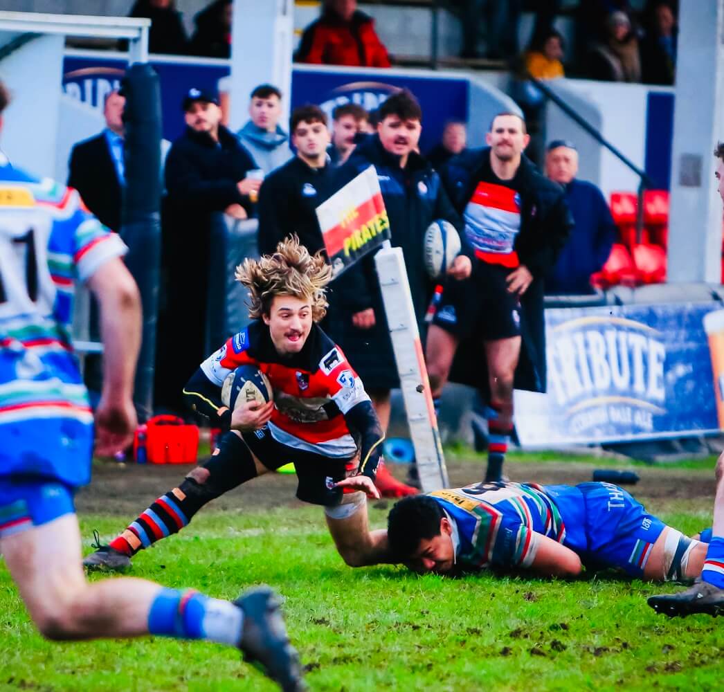 To their credit the determined Pirates refused to cave in during remaining time against the unbeaten league leaders. Rhodri McAtee was his lively self as a replacement scrum half, and it was another replacement eager for action in hooker Kenny Jones who applied the necessary downward pressure when driven over the line at the clubhouse corner.