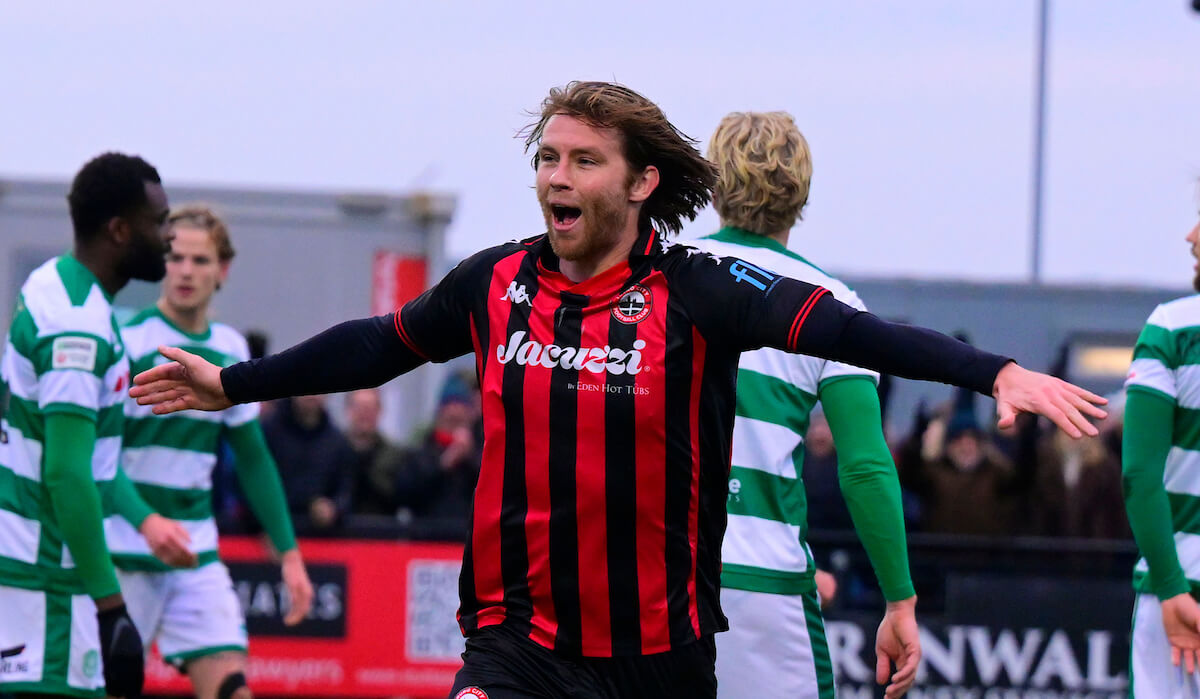 📷Goal celebrations for Tyler Harvey of Truro City during the National League match between Truro City and Yeovil Town at Truro City Stadium on 26th December 2025 Photo: Tom Sandberg/PPAUK