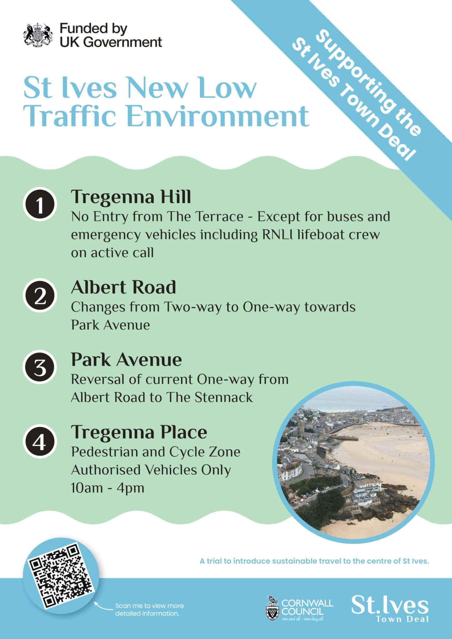 “This is going to be a big change and we understand there will be reservations, but the current traffic situation, especially around Tregenna Hill and Library Corner just can’t carry on. We ask that everyone is patient, and gives it some time to bed in… but I believe this will be transformational for St Ives, and make driving through town easier, as well as reducing traffic and freeing up road space in order to make walking and cycling safer.”