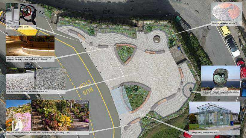 This final stage will include a new bespoke bus shelter, granite paving, bespoke granite planters and benches, street furniture, a millwheel feature and lighting. Landscaping and seating are also part of the plan.