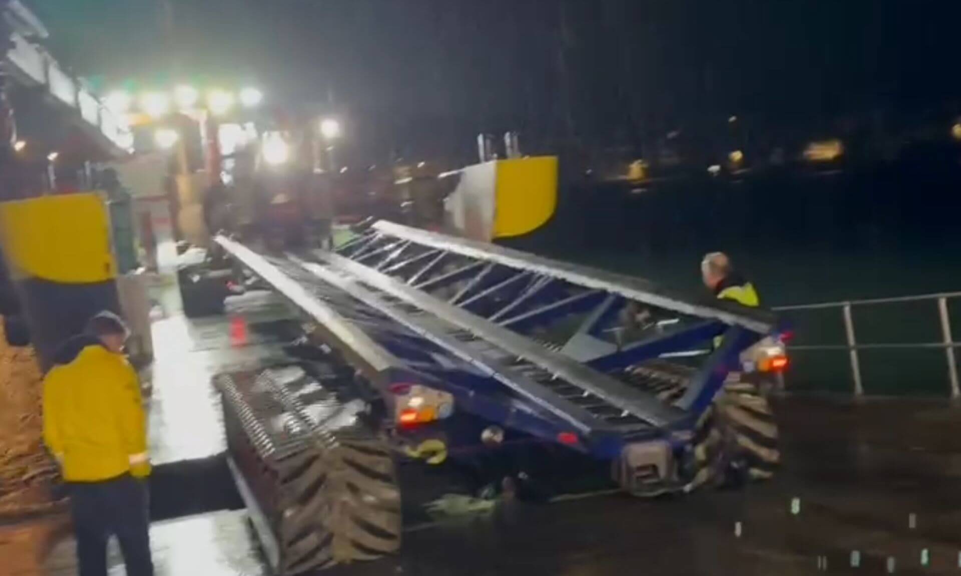 With permission from the Hayle harbourmaster, the new equipment was loaded onto a landing craft and transported via the Hayle estuary to St Ives Harbour. Careful planning around the incoming spring tide was crucial to ensure both loading and unloading could be completed on schedule.