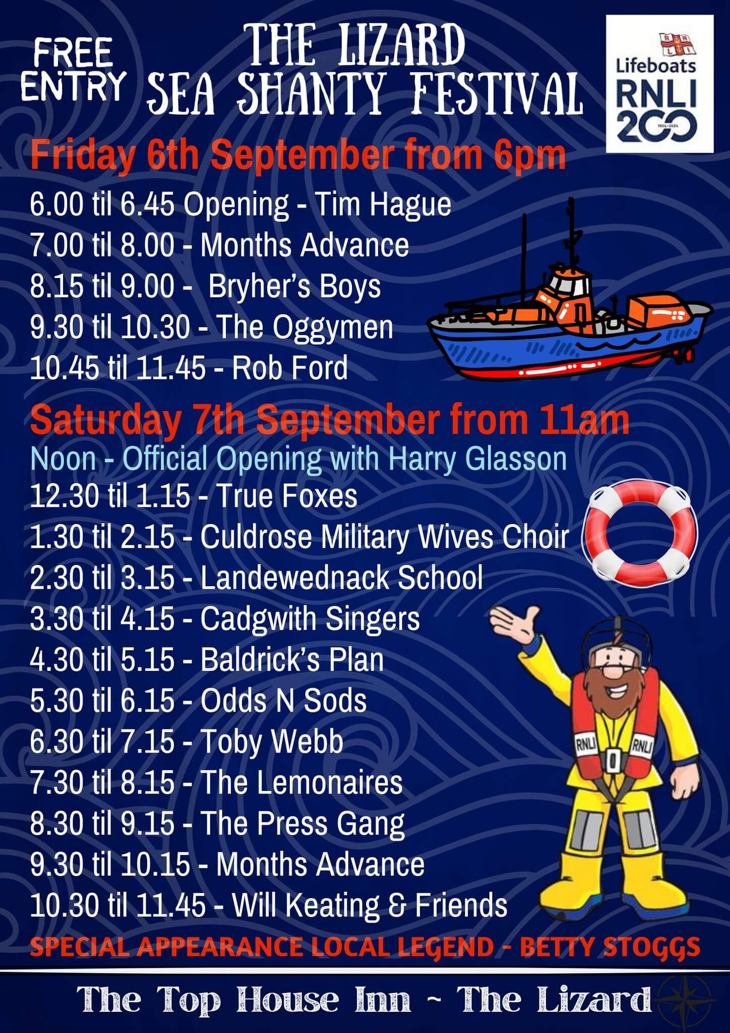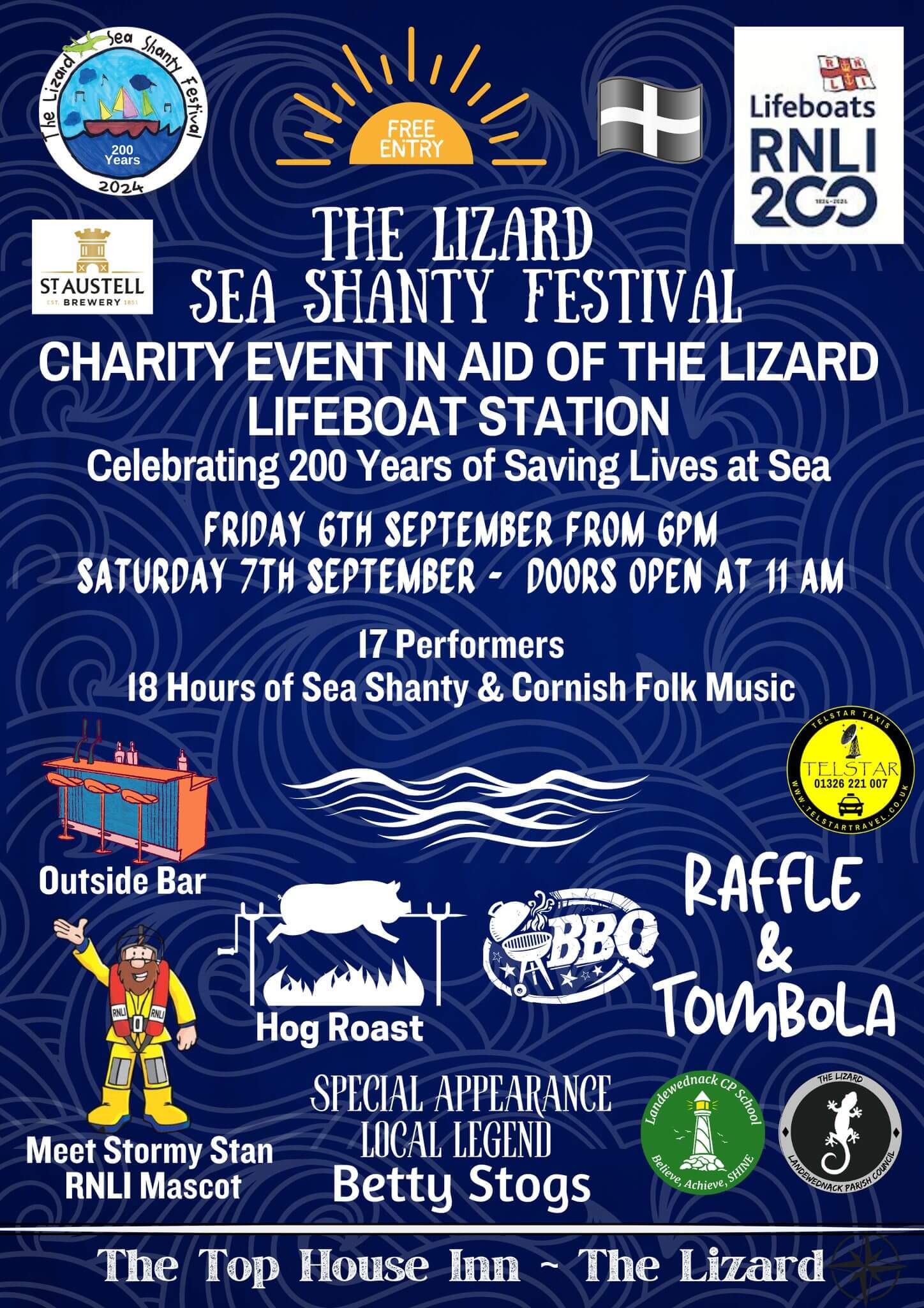 The much-anticipated Lizard Sea Shanty Festival is back, and this year promises to be a spectacular event as it honours 200 years of the Royal National Lifeboat Institution (RNLI) saving lives at sea. Set against the stunning backdrop of The Lizard, this festival, hosted at the Top House Inn, will kick off on Friday night and continue through Saturday, with a packed schedule of performances, food, and festivities.